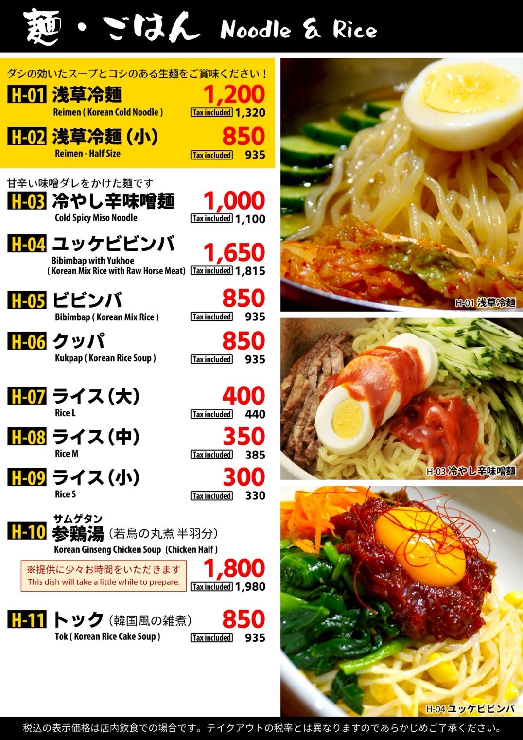 冷麺、ビビンバ等